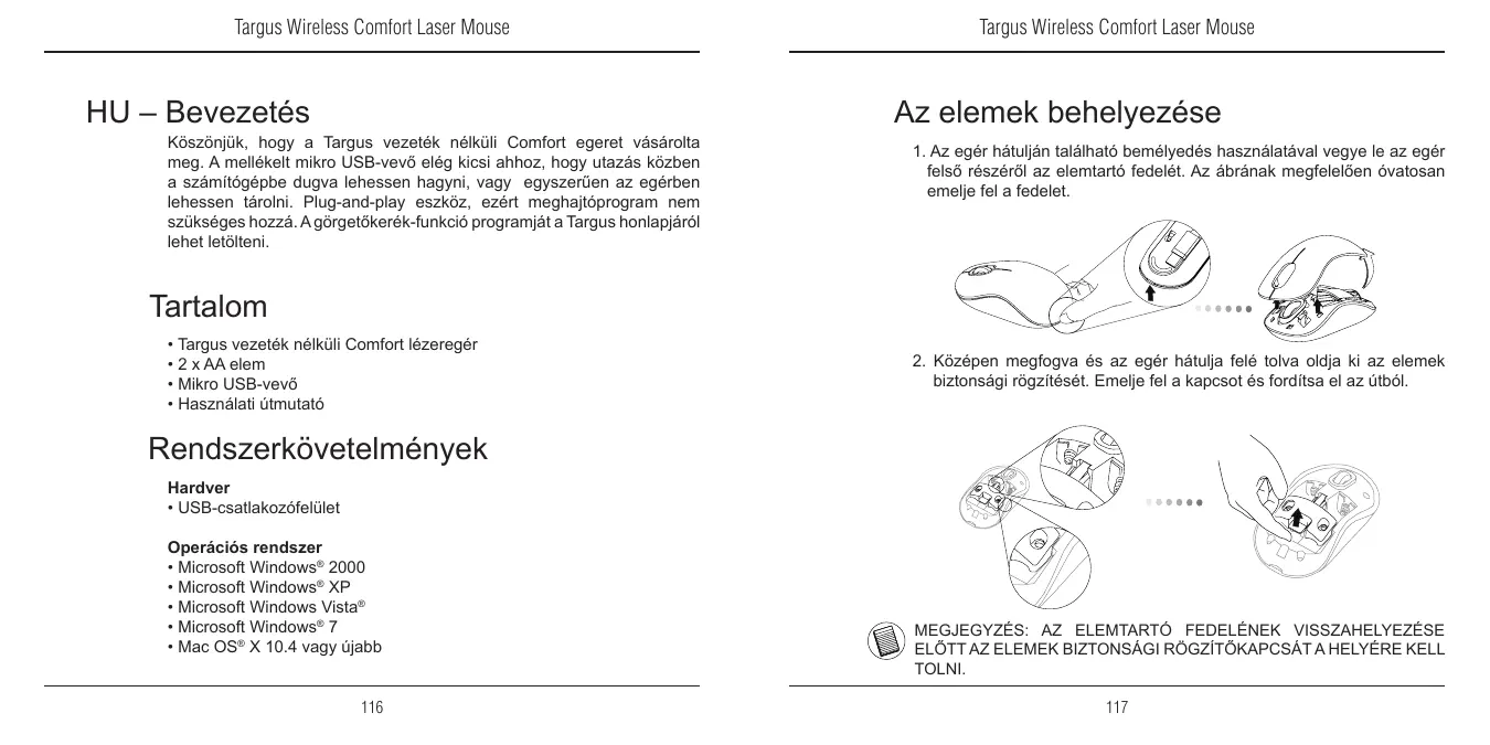 Téléchargez la notice de votre Vezeték nélküli egér au format PDF gratuitement ! Retrouvez votre notice WIRELESS COMFORT LASER MOUSE - TARGUS et reprennez votre appareil électronique en main. Sur cette page sont publiés tous les documents nécessaires à l'utilisation de votre appareil WIRELESS COMFORT LASER MOUSE de la marque TARGUS.