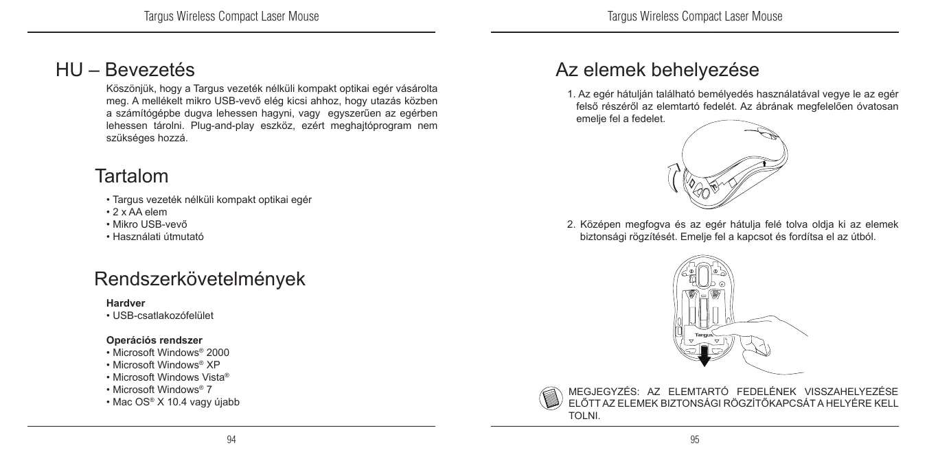 HASZNÁLATI ÚTMUTATÓ WIRELESS COMPACT LASER MOUSE TARGUS