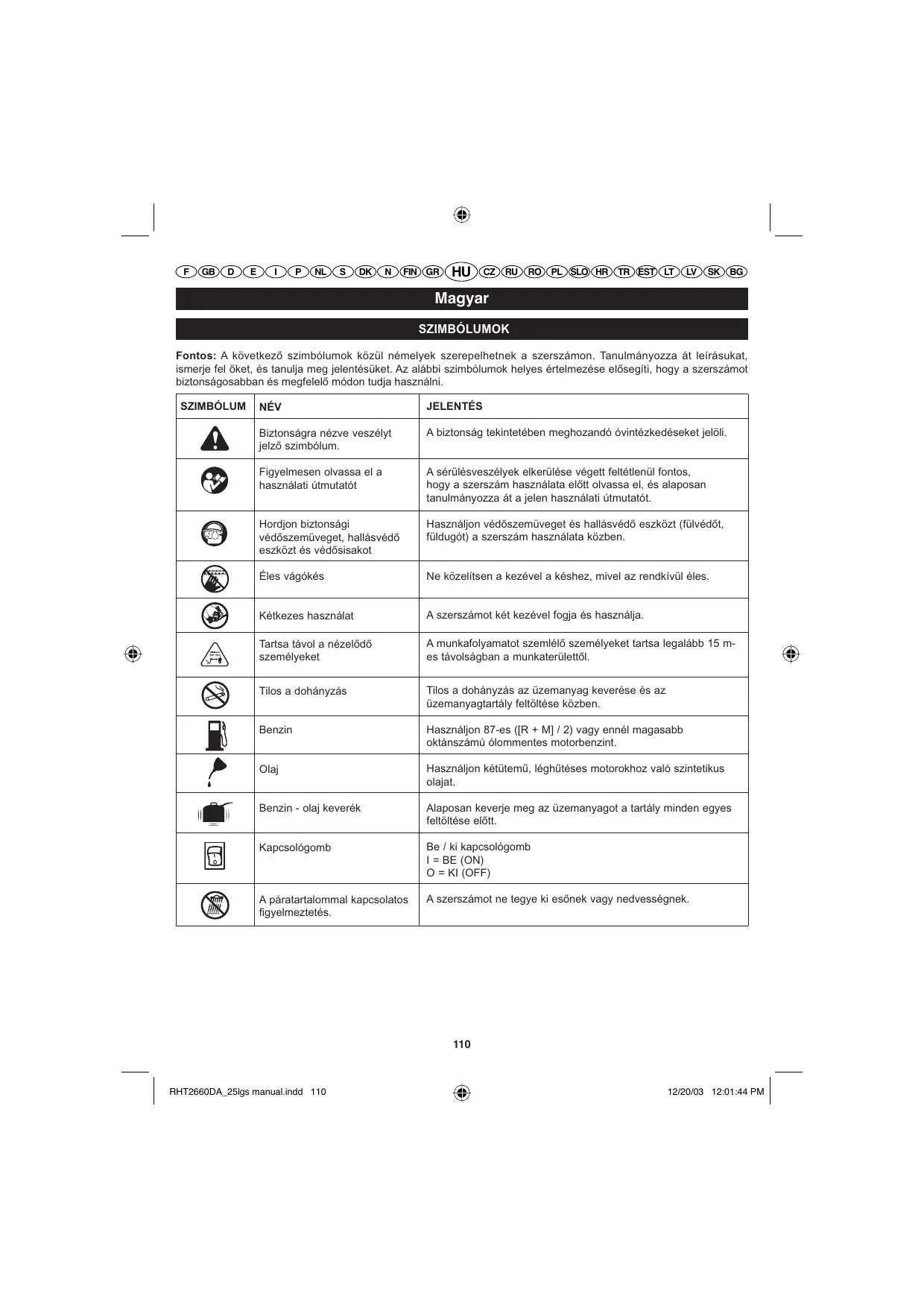 HASZNÁLATI ÚTMUTATÓ RHT2660DA RYOBI