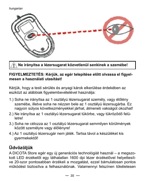 4.) Az 1 osztaly lylezersugar nem jatek. Tartsa tavol a keszuleket kos gyernekettoi!