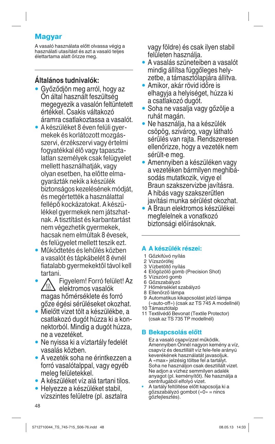 TS745A & TS745 A - Vasaló BRAUN - Ingyenes használati útmutató