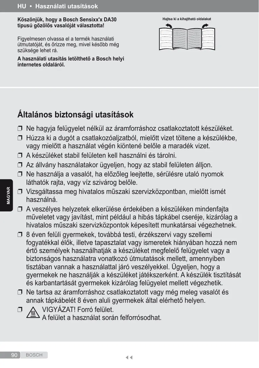MAGYAR Kôszünjük, hogy a Bosch Sensixx'x DA30 Hatsa ki a kihajthaté oldalakat tipusü gôzôlés vasaléjät vâlasztottal