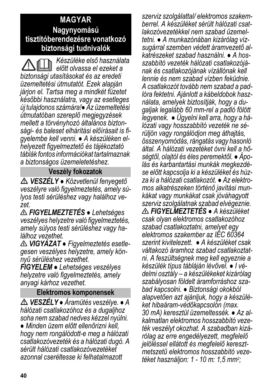 Téléchargez la notice de votre Magasnyomású mosó au format PDF gratuitement ! Retrouvez votre notice K7 FULL CONTROL - KARCHER et reprennez votre appareil électronique en main. Sur cette page sont publiés tous les documents nécessaires à l'utilisation de votre appareil K7 FULL CONTROL de la marque KARCHER.
