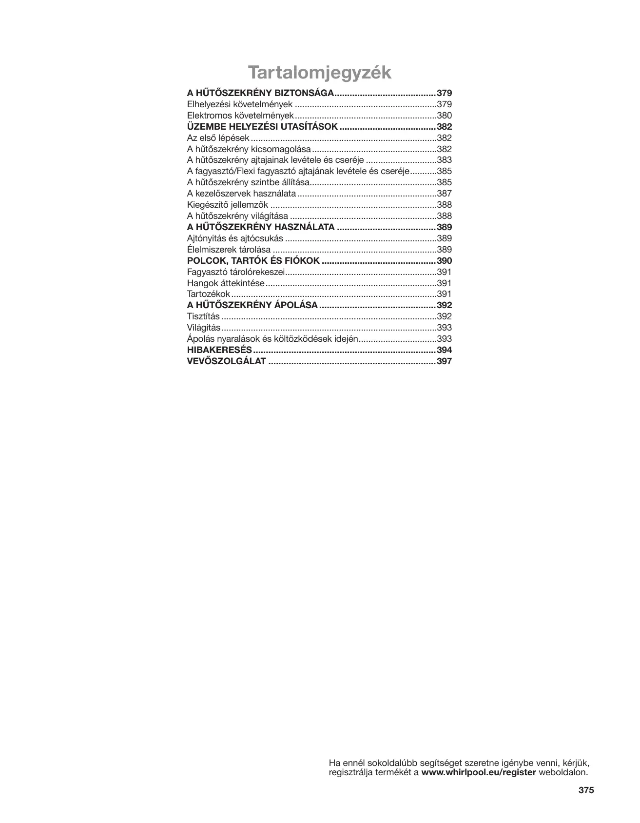 HASZNÁLATI ÚTMUTATÓ WQ9B1L WHIRLPOOL