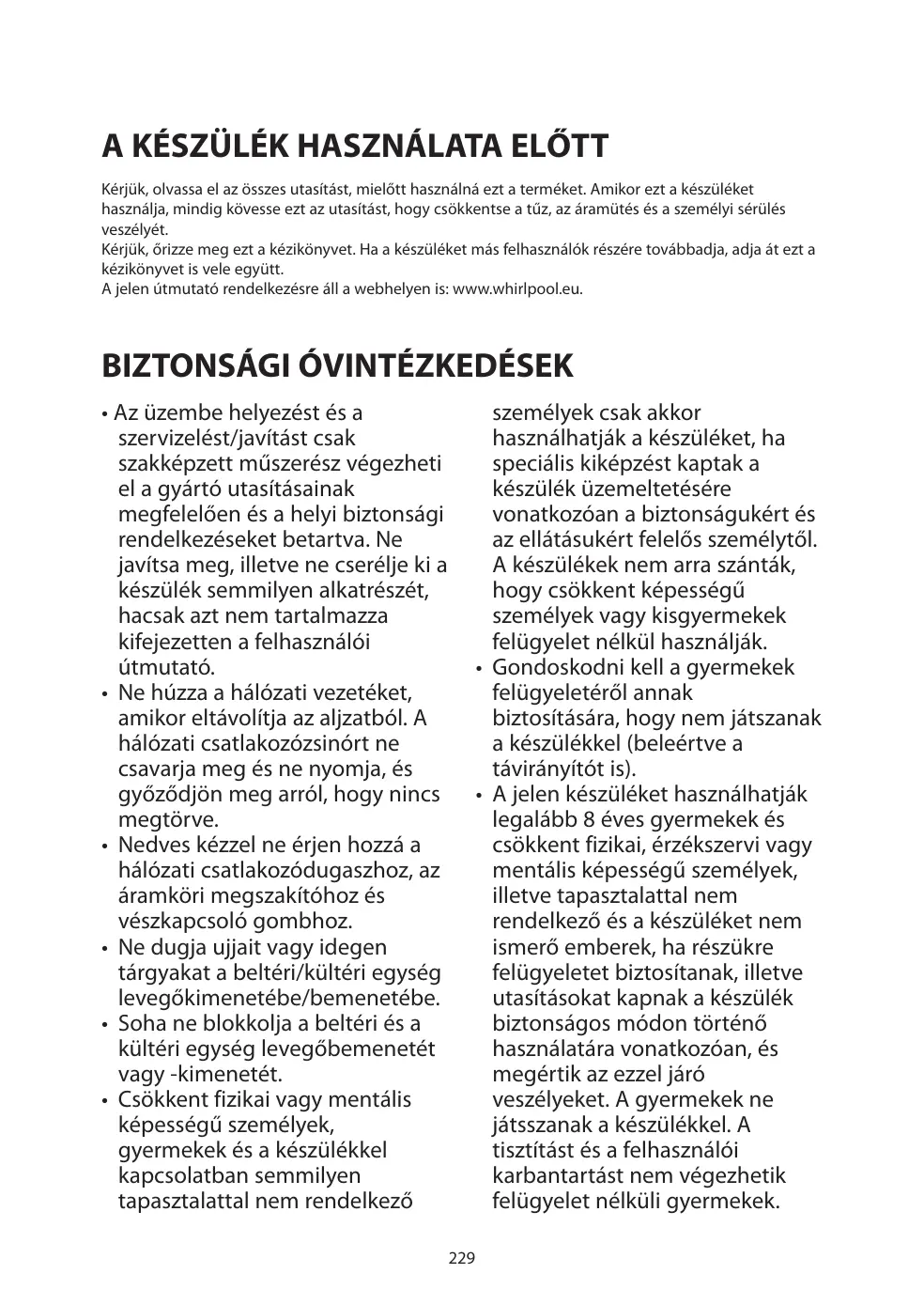 HASZNÁLATI ÚTMUTATÓ PACW29HP WHIRLPOOL