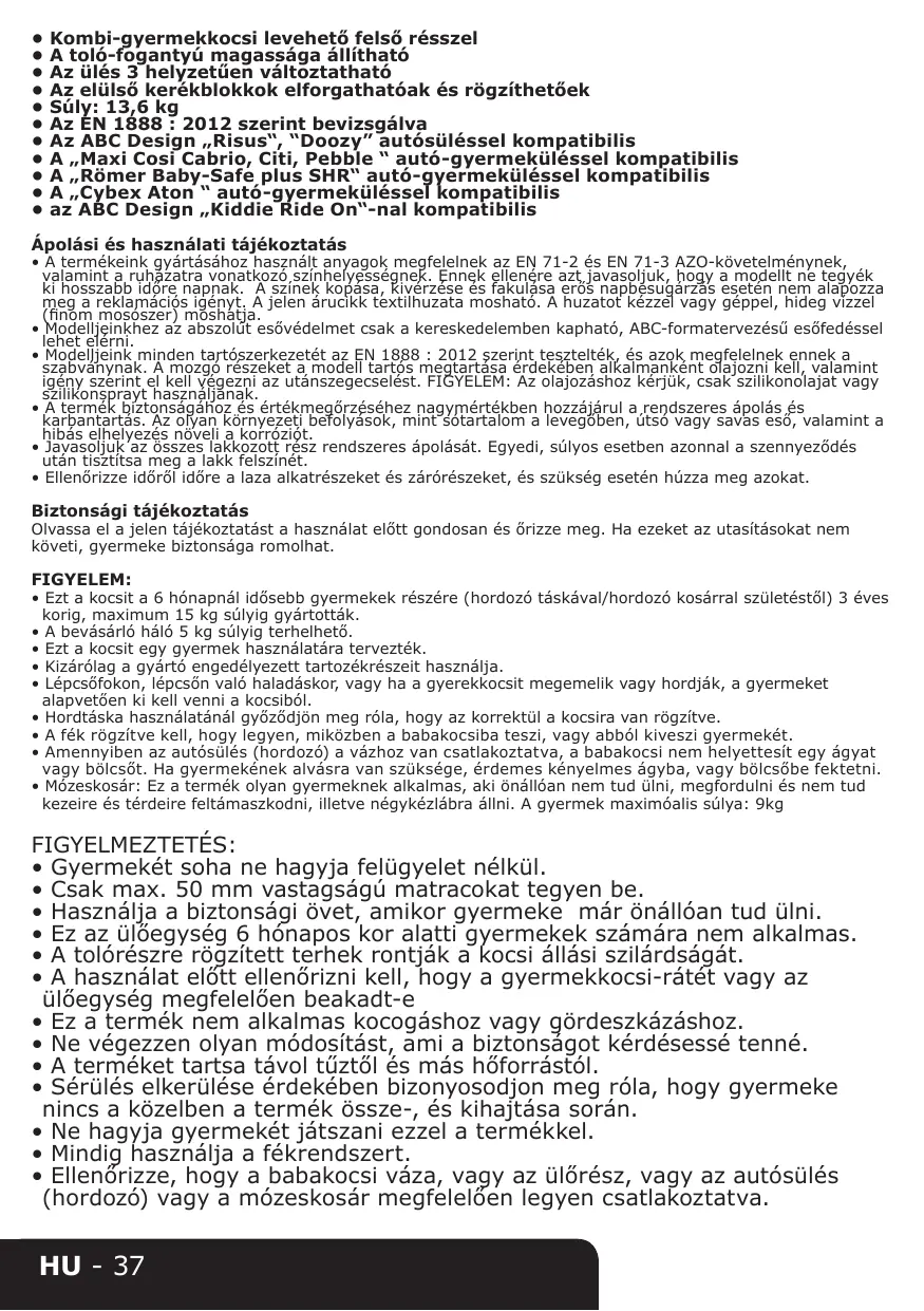 - Ezt a kocsit a 6 hónapnál idősebb gyermekek részére (hordoz taskával/hordozó kosárral születestól) 3 éves korig, maximum 15 kg súlyig gyartották.