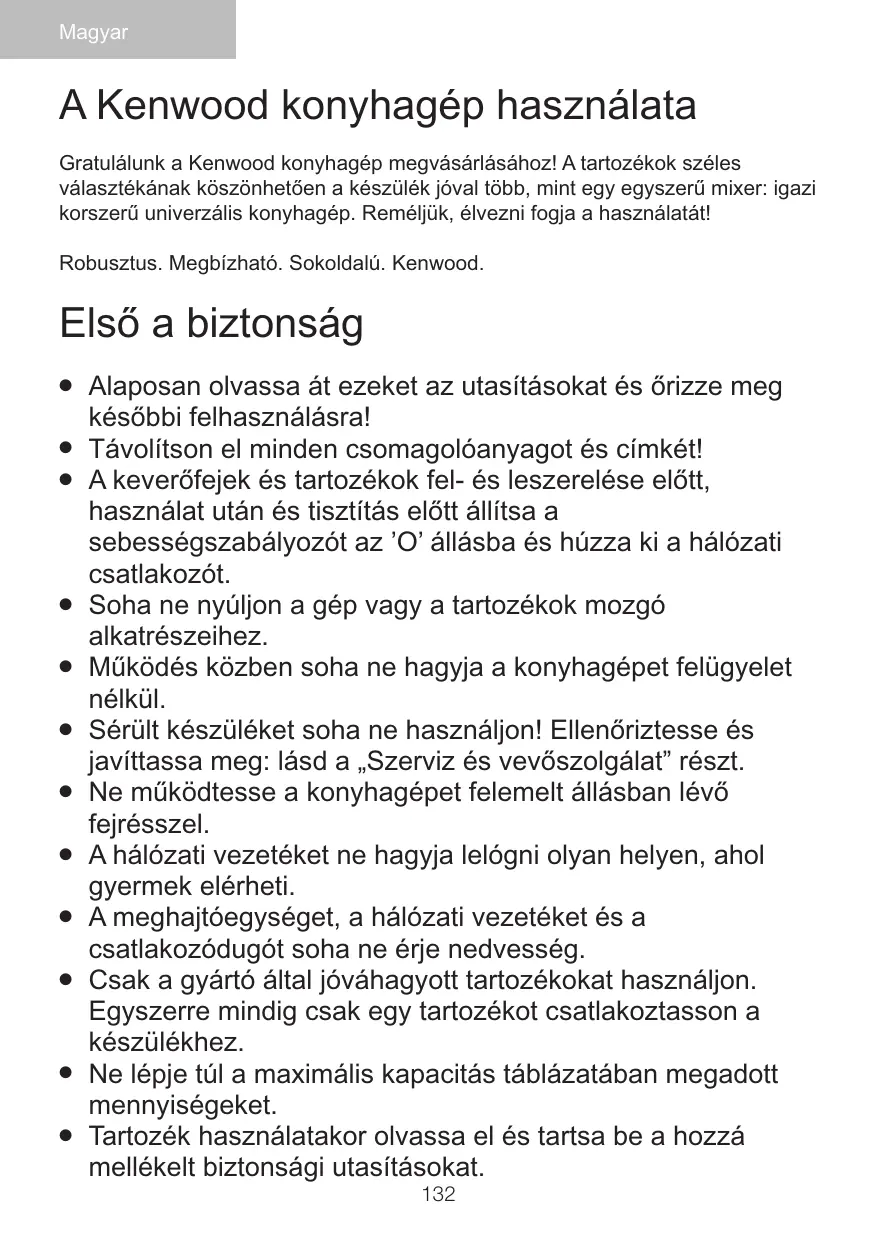HASZNÁLATI ÚTMUTATÓ KM280 KENWOOD