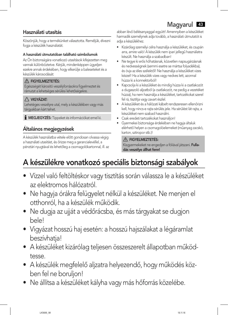 Az OnBiztonsagara vonatkozo utasitaskifejezetten meg vannak kulönboztete. Kérjuk, mindenképpen ügyeljen ezekre annak erdekében, hovy ekuljie a baleseteket és a keszülk károsodását: