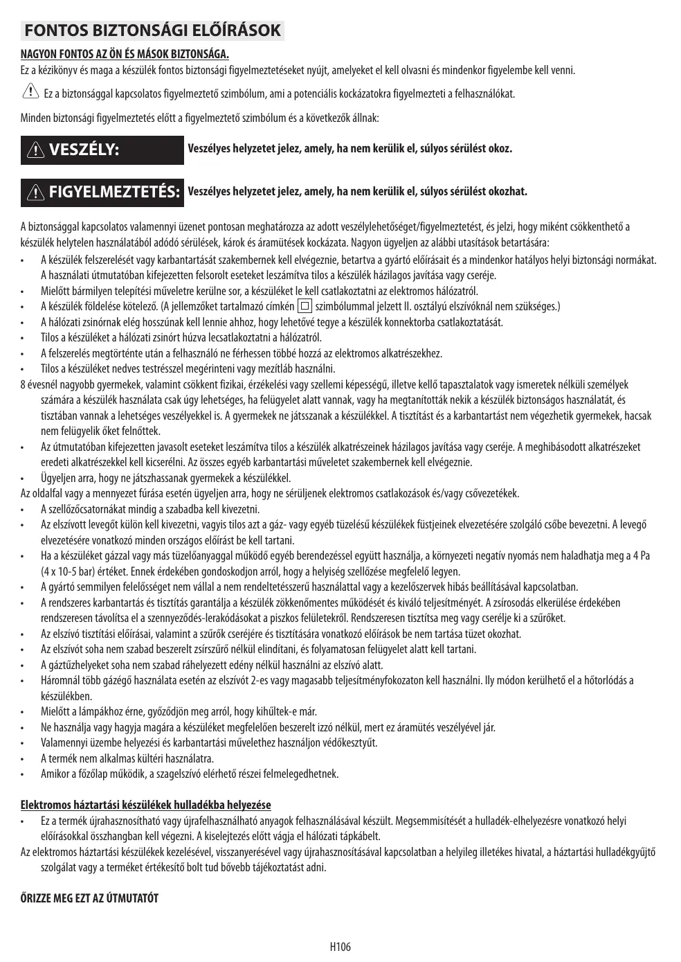 HASZNÁLATI ÚTMUTATÓ WHF96AMX - WHG96AMX - WHF66AMX WHIRLPOOL