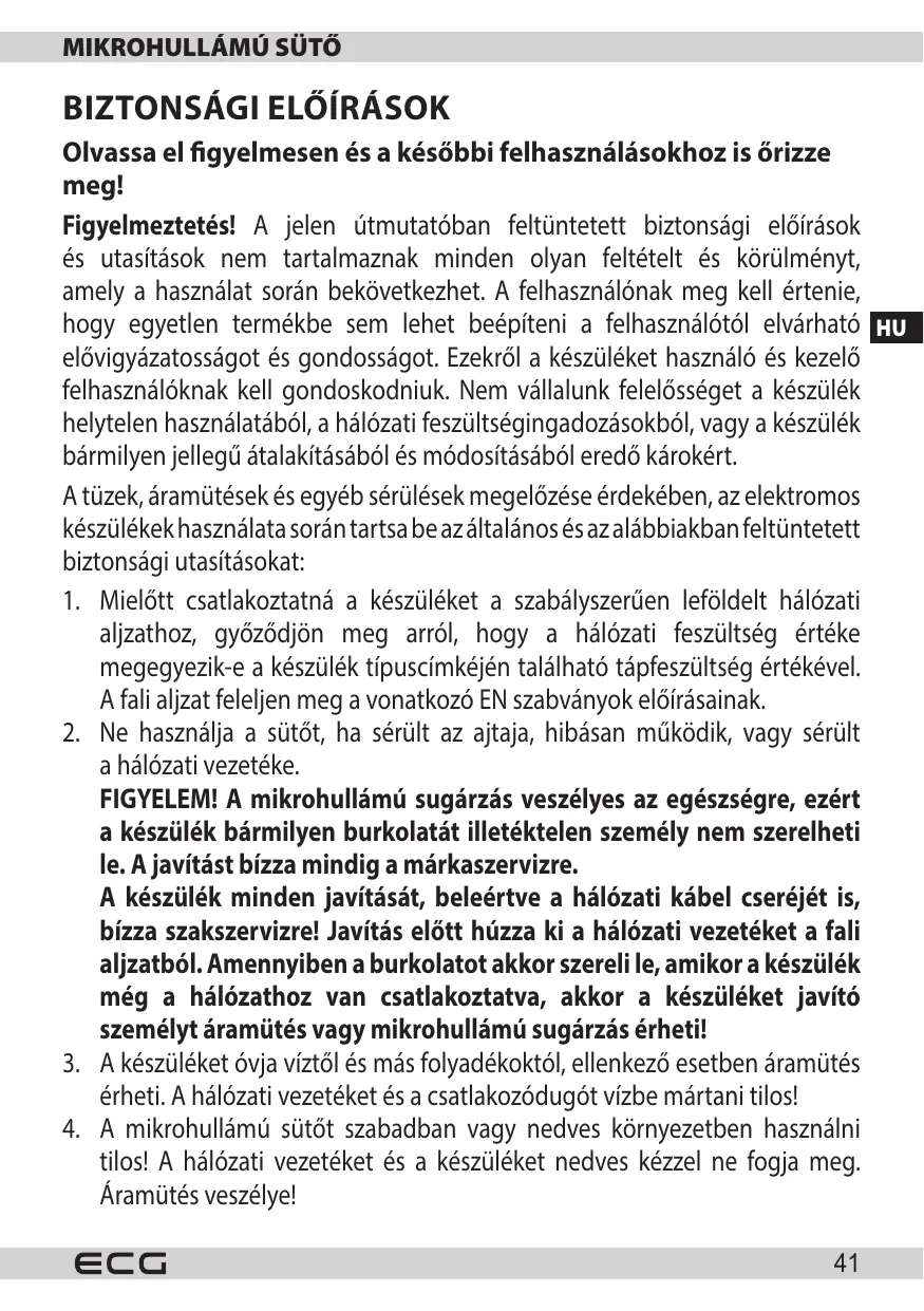 személyek, illetve a készülék használatát nem ismerő és hasonló készülék üzemeltetéseinek a tapasztalataival nem rendelkező személyek csak a készülék használati utasítását ismerő és a készülék biztonságos használatáért felelősséget vállaló személy felügyelete mellett használhatják. A készülék nem játék, azzal gyerekek nem játszhatnak. A készüléket 8 év feletti gyerekek csak felnőtt személy felügyelete mellett tisztíthatják. Ne tegye ki magát feleslegesen a mikrohullámú sugárzásnak.