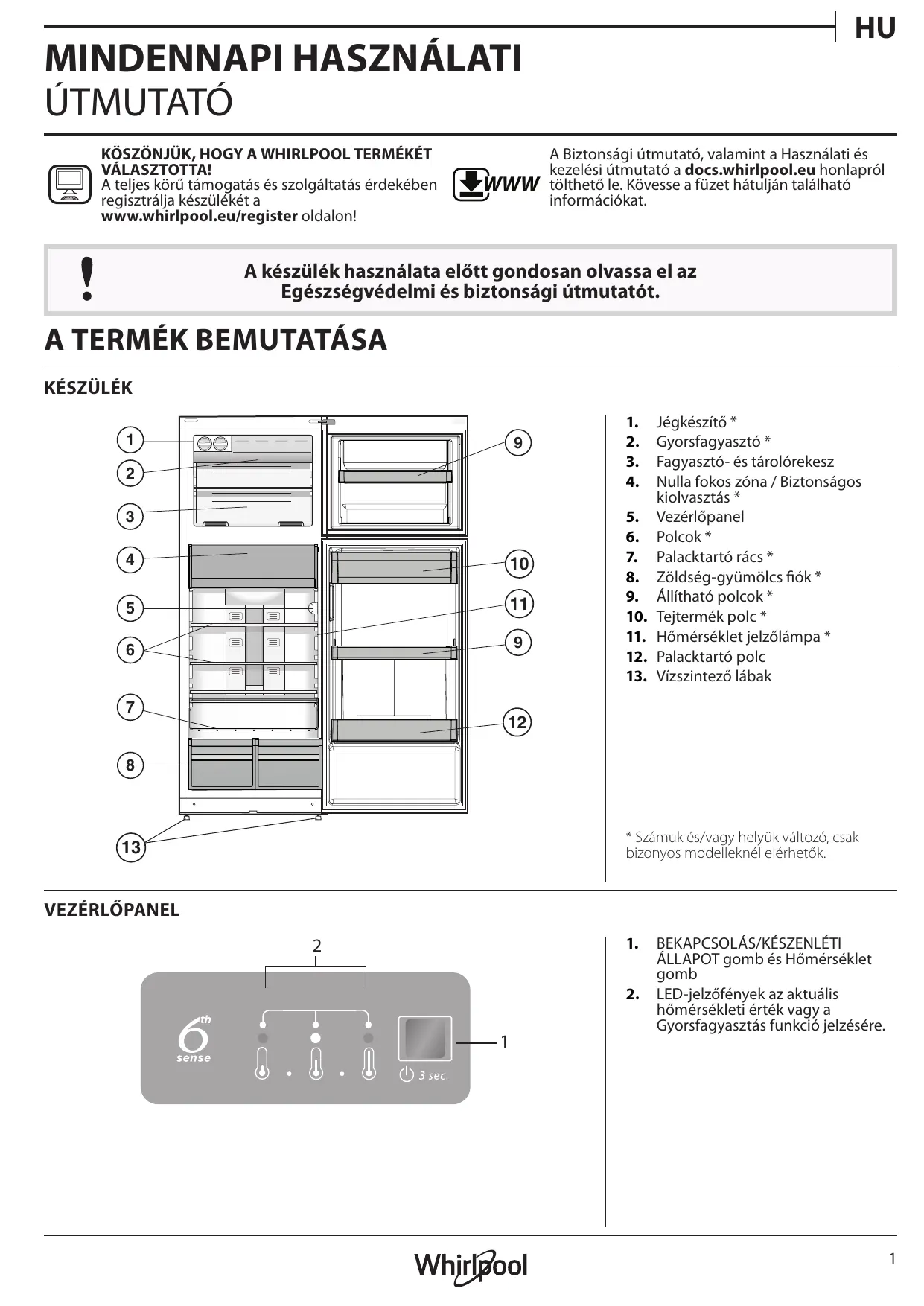 HASZNÁLATI ÚTMUTATÓ WT70I832X WHIRLPOOL