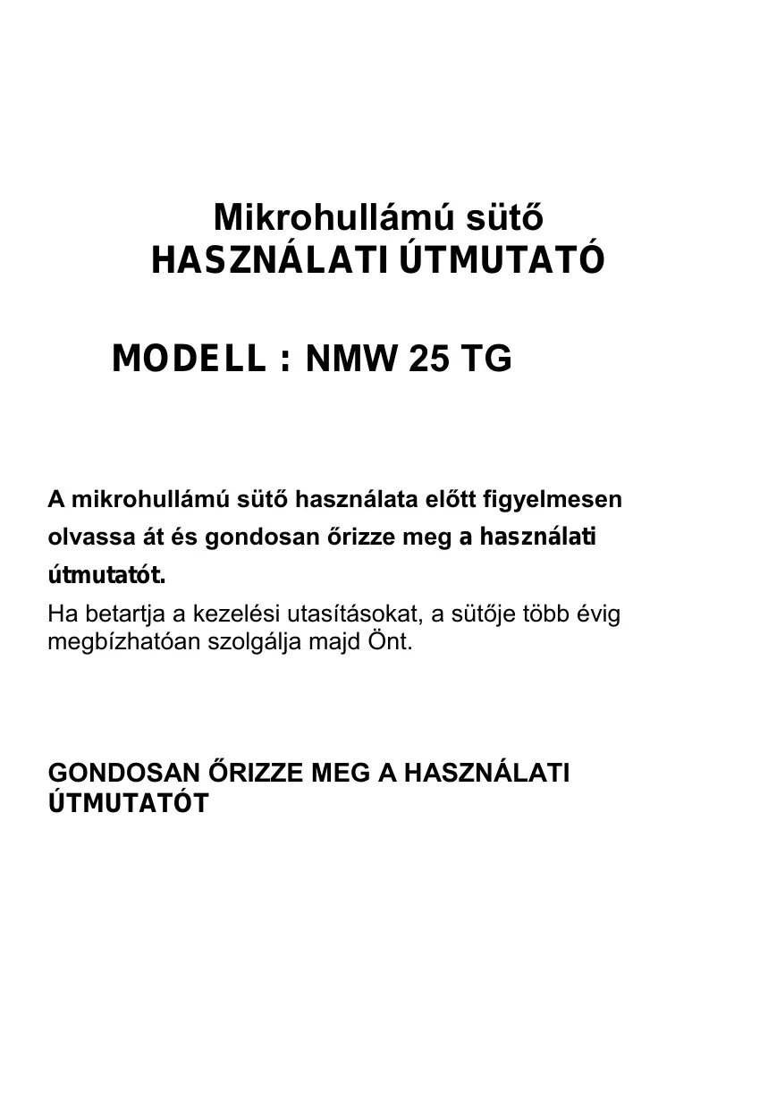 HASZNÁLATI ÚTMUTATÓ NMW 25 D NODOR