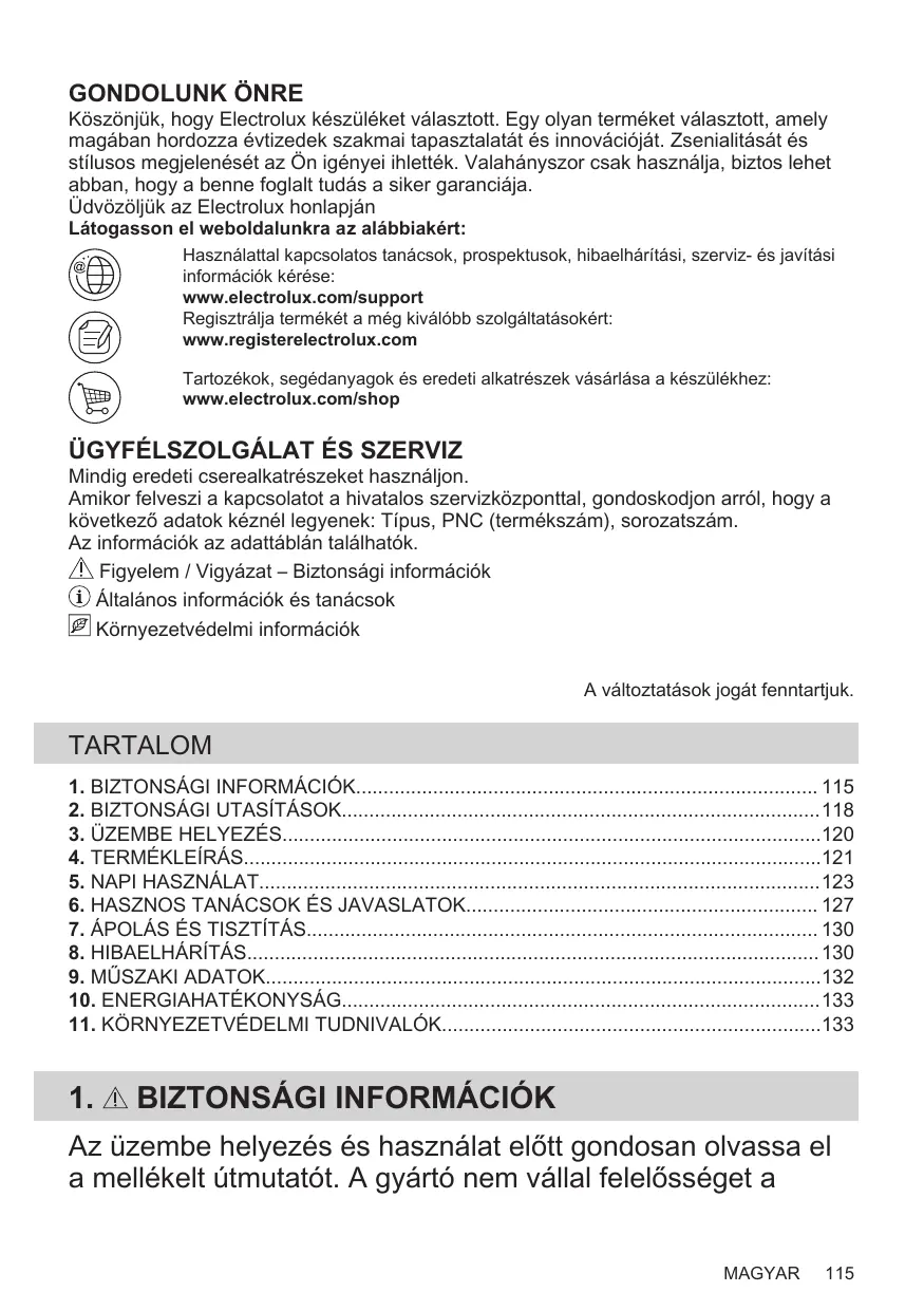 - BIZTONSÁGI INFORMÁCIÖK 115