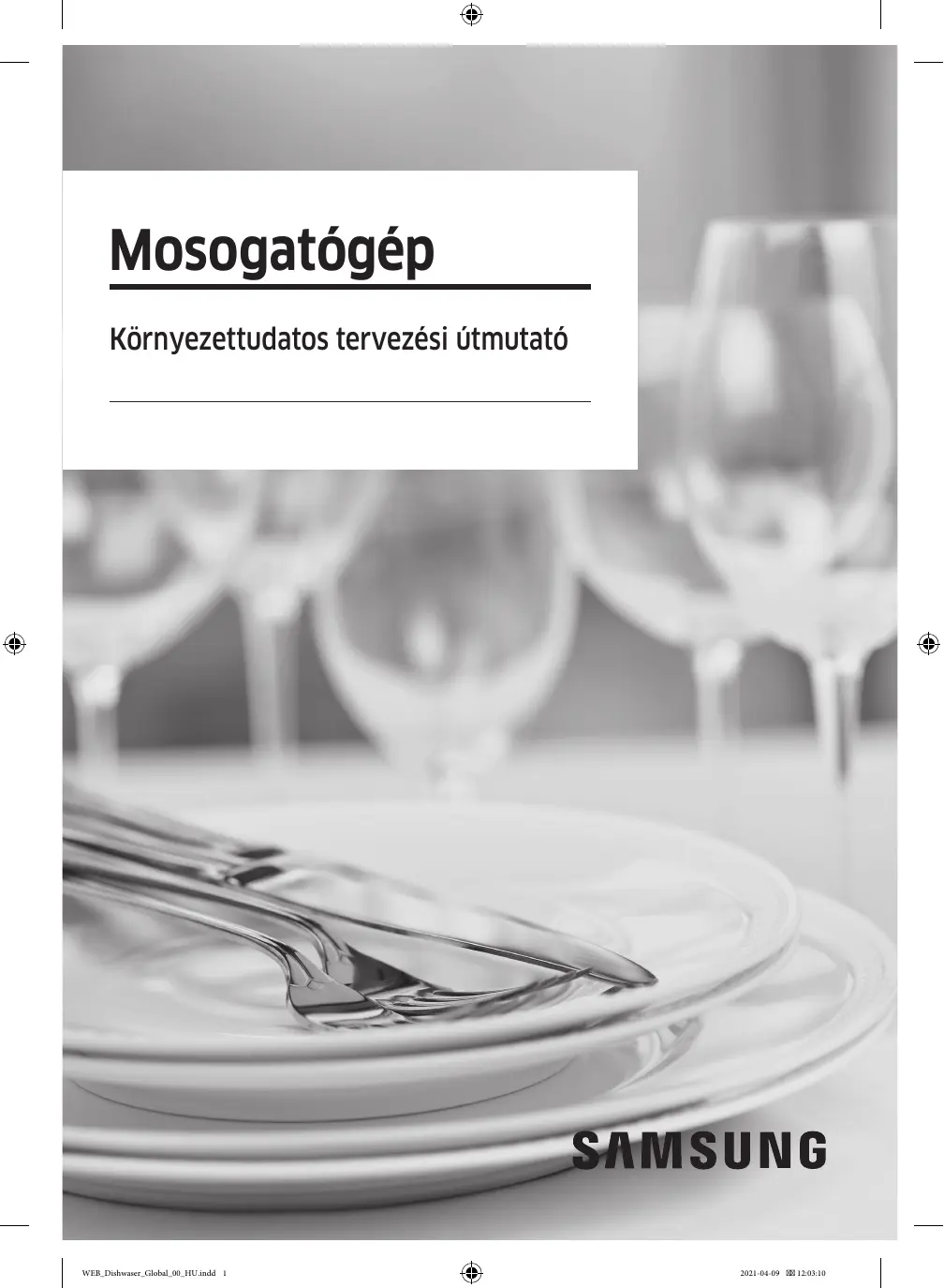 A normál szinten szennyezett konyhai edények tisztítására alkalmas Energiatakarékos program kombinált energia- és vízfogyasztását tekintve a leghatékonyabb program, amely egyben az EU környezetbarát tervezésre vonatkozó jogszabályának (A BIZOTTSÁG (EU) 2019/2022 SZ. RENDELETE) is megfelel. A konyhai edények előzetes kézi öblítése nagyobb víz- és energiafogyasztáshoz vezet, ezért nem javasolt. Csak a nagyobb ételmaradékokat távolítsa el róluk például késsel stb., mielőtt a mosogatógépbe helyezi őket. A bekötött víz maximum 60 °C hőmérsékletű lehet, meleg víz csatlakoztatása esetén pedig a készülék kevesebb áramot használ fel. Legjobb, ha a lehető legjobban feltölti a kosarat anélkül, hogy túltöltené. Ha spórolni szeretne a vízzel és az energiával, használja az Energiatakarékos programot. Az Energiatakarékos a leghatékonyabb program normál szinten szennyezett mosatlan elmosogatására. Használjon megfelelő mennyiségű mosogató- és öblítőszert, a gyártó útmutatásai alapján. A mosogatógép használata a közönséges kézi mosogatáshoz képest kevesebb vizet használ el. A környezetbarát tervezéssel kapcsolatos információk a www.samsung.com/support oldalon találhatók.