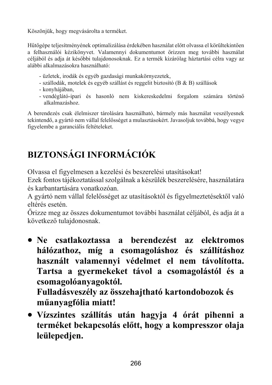 - dans les exploitations agricoles, pour la clientèle des hôtels, motels et autres environnements de type résidentiel - dans les hébergements Bed and Breakfast (B & B) - pour les services de restauration et des applications similaires non destinées à une vente au détail. Cet appareil doit être utilisé uniquement à des fins de conservation d'aliments, toute autre utilisation est considérée comme dangereuse et le fabricant ne sera pas responsable de toute omission. De plus, il est recommandé de prendre note des conditions de garantie.