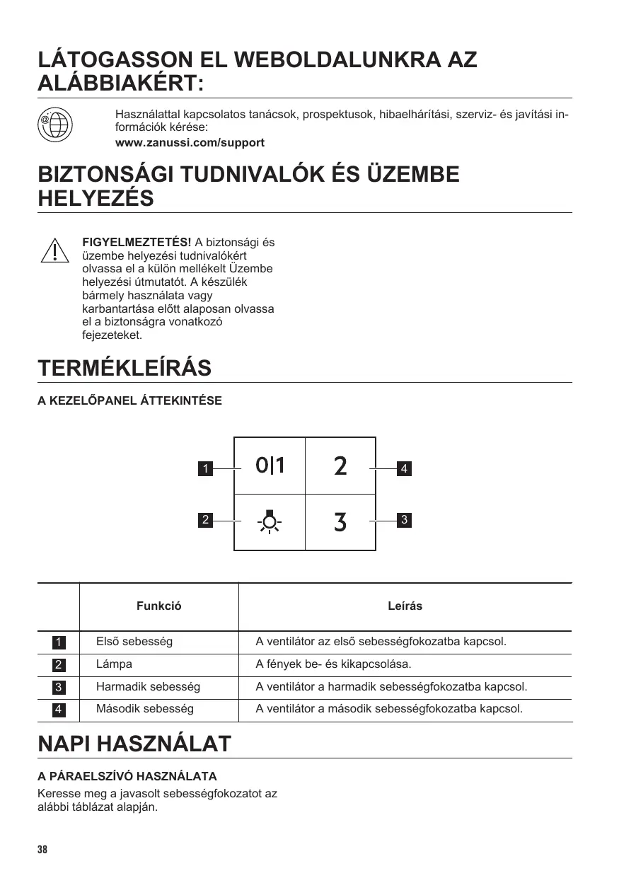 HASZNÁLATI ÚTMUTATÓ ZFP416X ZANUSSI