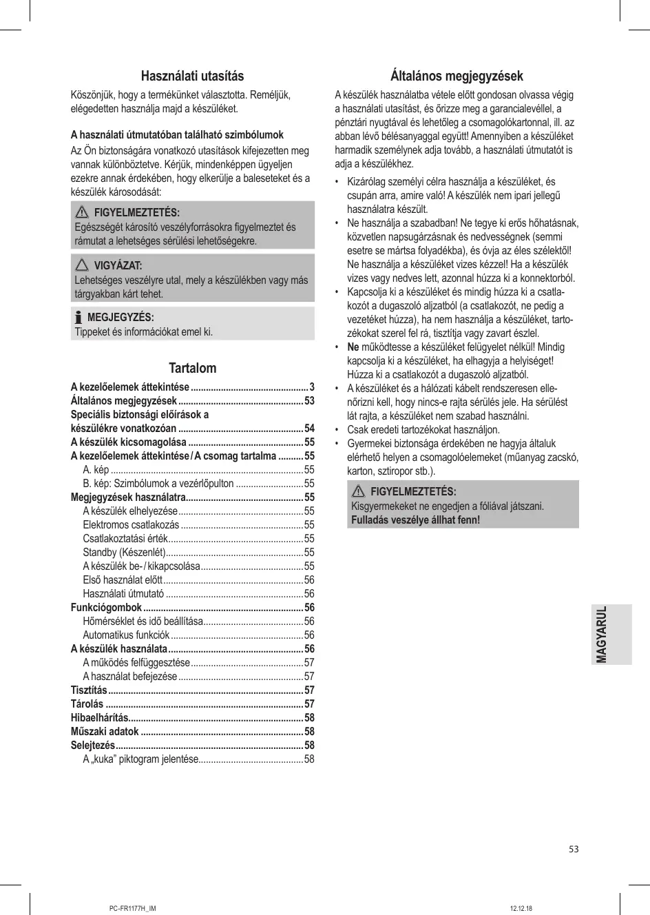 Modèle : PC-FR 1177 H Alimentation : 220 - 240 V~, 50 / 60 Hz Consommation :1700 W Classe de protection : électriques, les bornes de collecte prévues à cet effet où vous pouvez vous débarrasser des appareils que vous n’utilisez plus. Vous contribuez ainsi à éviter les impacts potentiels dans l’environnement et sur la santé de chacun, causés par une mauvaise élimination de ces déchets. Vous contribuez aussi au recyclage sous toutes ses formes des appareils électriques et électroniques usagés. Vous trouverez toutes les informations sur les bornes d’élimination des appareils auprès de votre commune ou de l’administration de votre communauté.