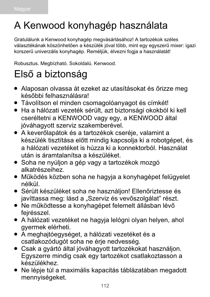 HASZNÁLATI ÚTMUTATÓ CHEF XL KPL9000S KENWOOD
