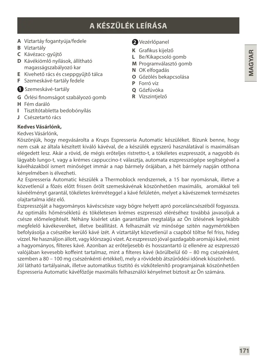 Téléchargez la notice de votre Kávéfőző gép au format PDF gratuitement ! Retrouvez votre notice ESSENTIAL EA8161 - KRUPS et reprennez votre appareil électronique en main. Sur cette page sont publiés tous les documents nécessaires à l'utilisation de votre appareil ESSENTIAL EA8161 de la marque KRUPS.