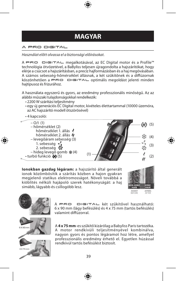 HASZNÁLATI ÚTMUTATÓ 6000E BABYLISS