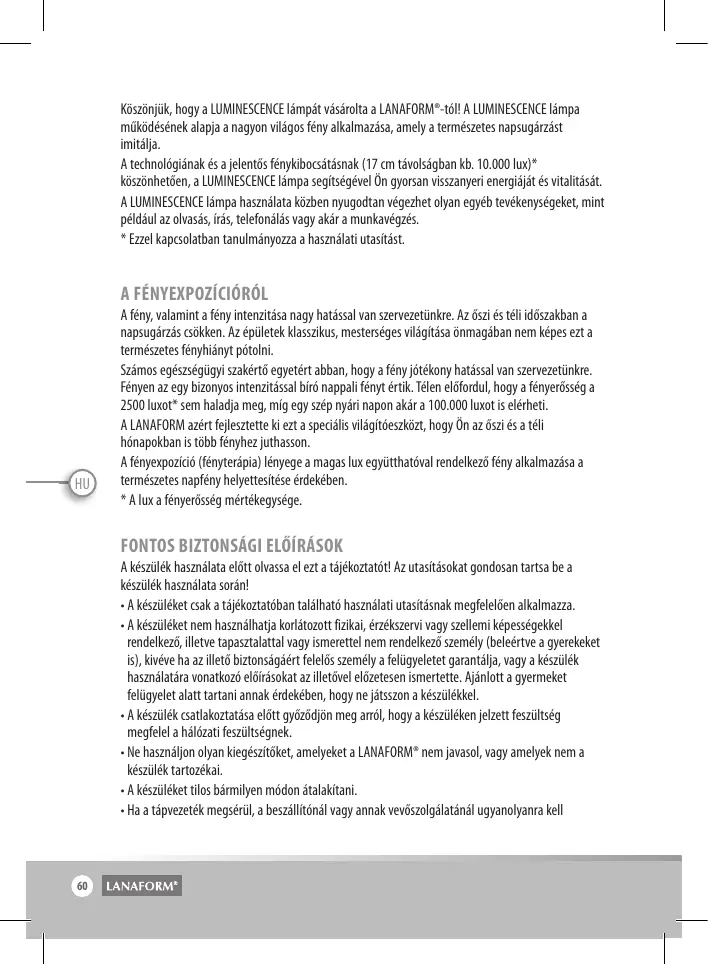 HASZNÁLATI ÚTMUTATÓ LA190108 LANAFORM