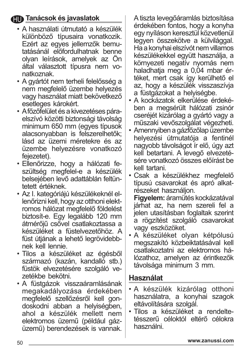 HASZNÁLATI ÚTMUTATÓ ZHV94750BA ZANUSSI