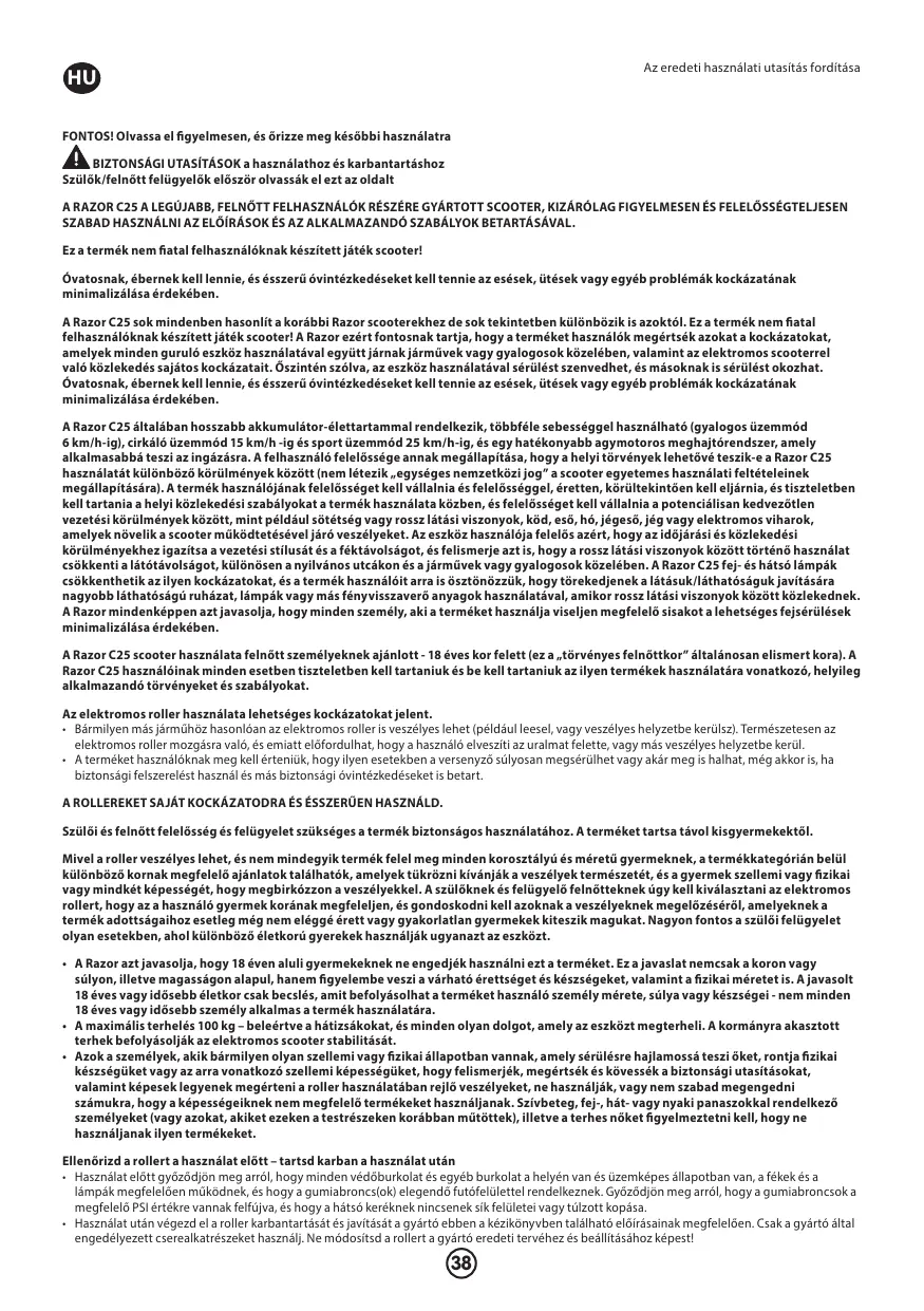 HASZNÁLATI ÚTMUTATÓ C25 RAZOR