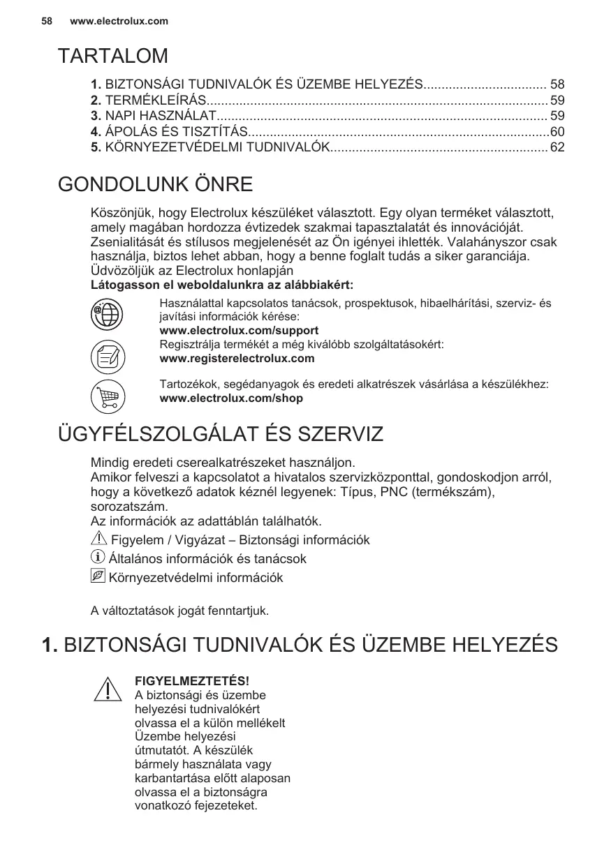 HASZNÁLATI ÚTMUTATÓ EFV628K ELECTROLUX