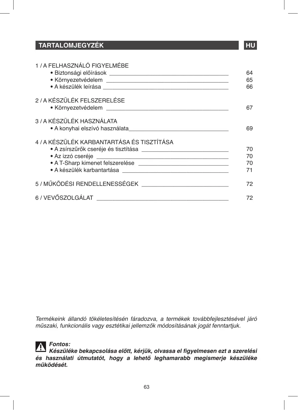 (les flammes aspirées risqueraient de détériorer l’appareil). — Les fritures effectuées sous l’appareil doivent faire l’objet d’une surveillance constante. Les huiles et graisses portées à très haute température peuvent prendre feu. — Respectez la fréquence de nettoyage et de remplacement des filtres. L’accumulation de dépôts de graisse risque d’occasionner un incendie. — Le fonctionnement au dessus d’un foyer à combustible (bois, charbon…) n’est pas autorisé. — N’utilisez jamais d’appareils à vapeur ou à haute pression pour nettoyer votre appareil (exigences relatives à la sécurité électrique). — Dans le souci d’une amélioration constante de nos produits, nous nous réservons le droit d’apporter à leurs caractéristiques techniques, fonctionnelles ou esthétiques toutes modifications de leurs caractéristiques liées à l’évolution technique. — Afin de retrouver aisément à l’avenir les références de votre appareil, nous vous conseillons de les noter en page “Service Après-Vente et Relations Consommateurs”. (Cette page vous explique également où les trouver sur votre appareil).