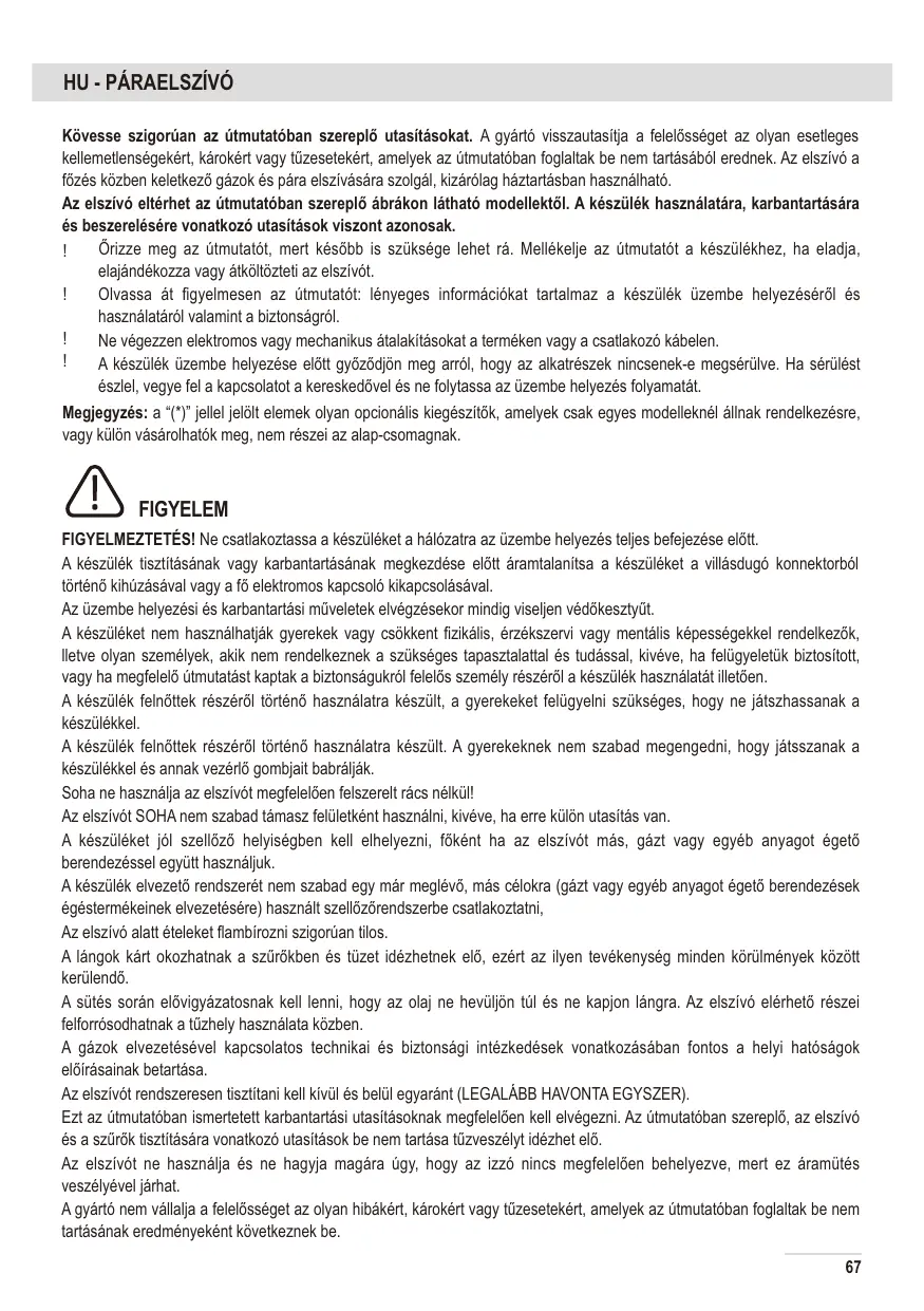 ATTENTION : si vous n'observez pas les recommandations concernant le nettoyage de la hotte et le remplacement des
