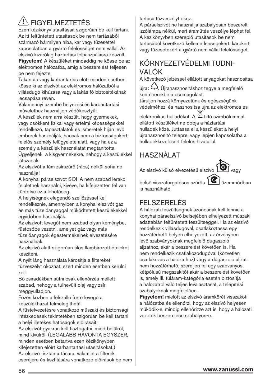 Téléchargez la notice de votre Konyhai páraelszívó au format PDF gratuitement ! Retrouvez votre notice ZHC92341XA - ZANUSSI et reprennez votre appareil électronique en main. Sur cette page sont publiés tous les documents nécessaires à l'utilisation de votre appareil ZHC92341XA de la marque ZANUSSI.