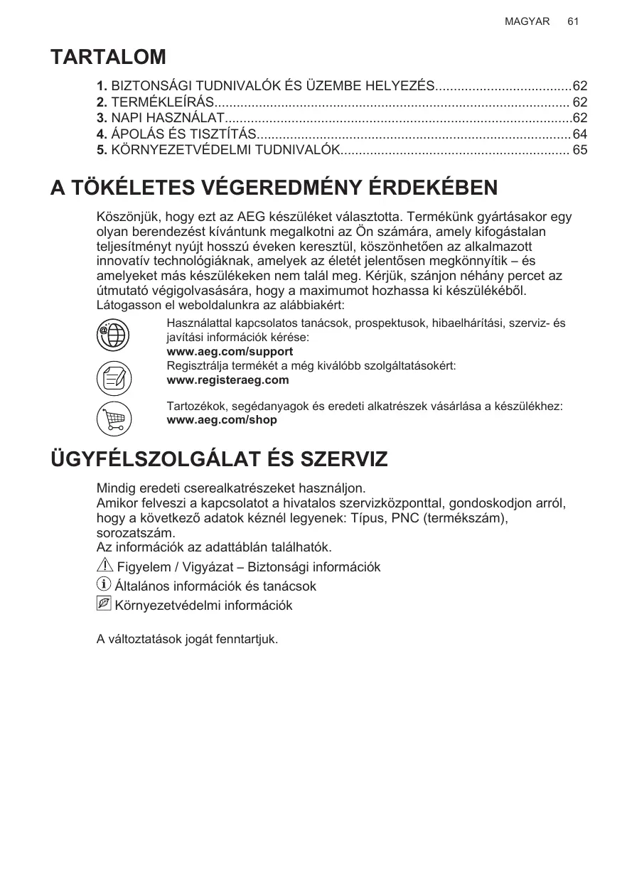 HASZNÁLATI ÚTMUTATÓ DIK6180HG AEG