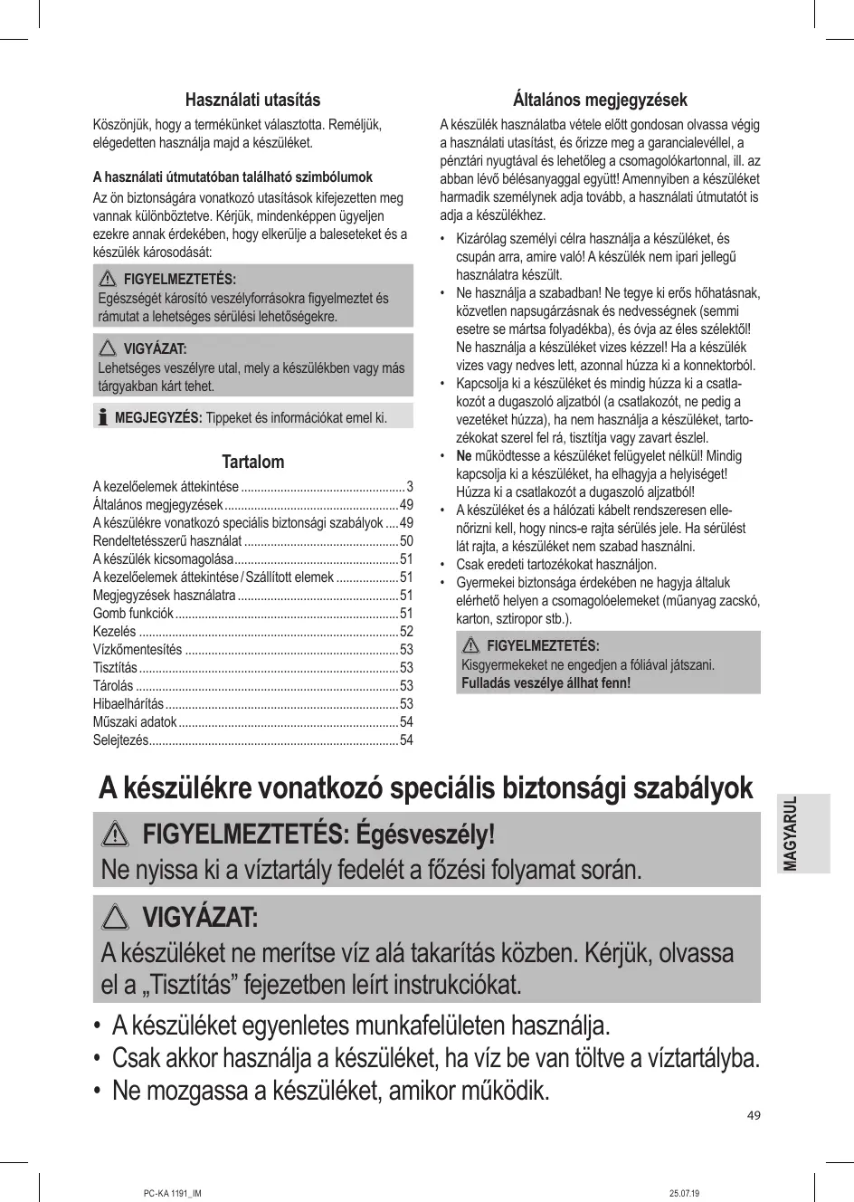 HASZNÁLATI ÚTMUTATÓ PC-KA1191 PROFICOOK