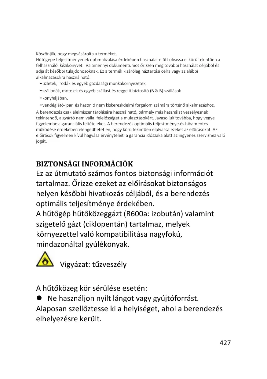 - pour les services de restauration et des applications similaires non destinées à une vente au détail. Cet appareil doit être utilisé uniquement à des fins de conservation d'aliments, toute autre utilisation est considérée comme dangereuse et le fabricant ne sera pas responsable de toute omission. De plus, il est recommandé de prendre note des conditions de garantie. Pour obtenir la meilleure performance possible et un fonctionnement sans problème de votre appareil, il est très important de lire attentivement ces instructions. Tout non-respect de ces instructions peut annuler votre droit à des services gratuits pendant la période de garantie.