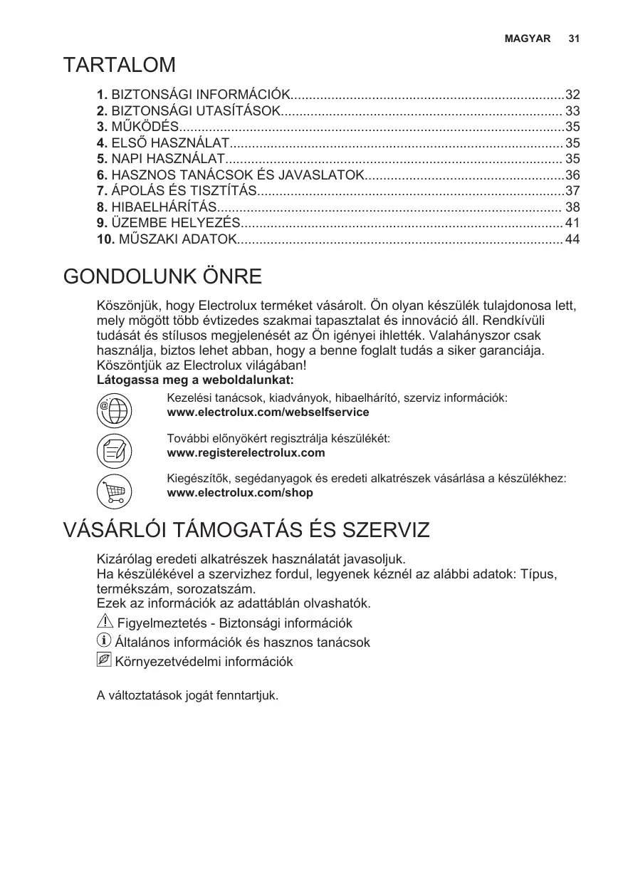 HASZNÁLATI ÚTMUTATÓ ERT1601AOW3 ELECTROLUX