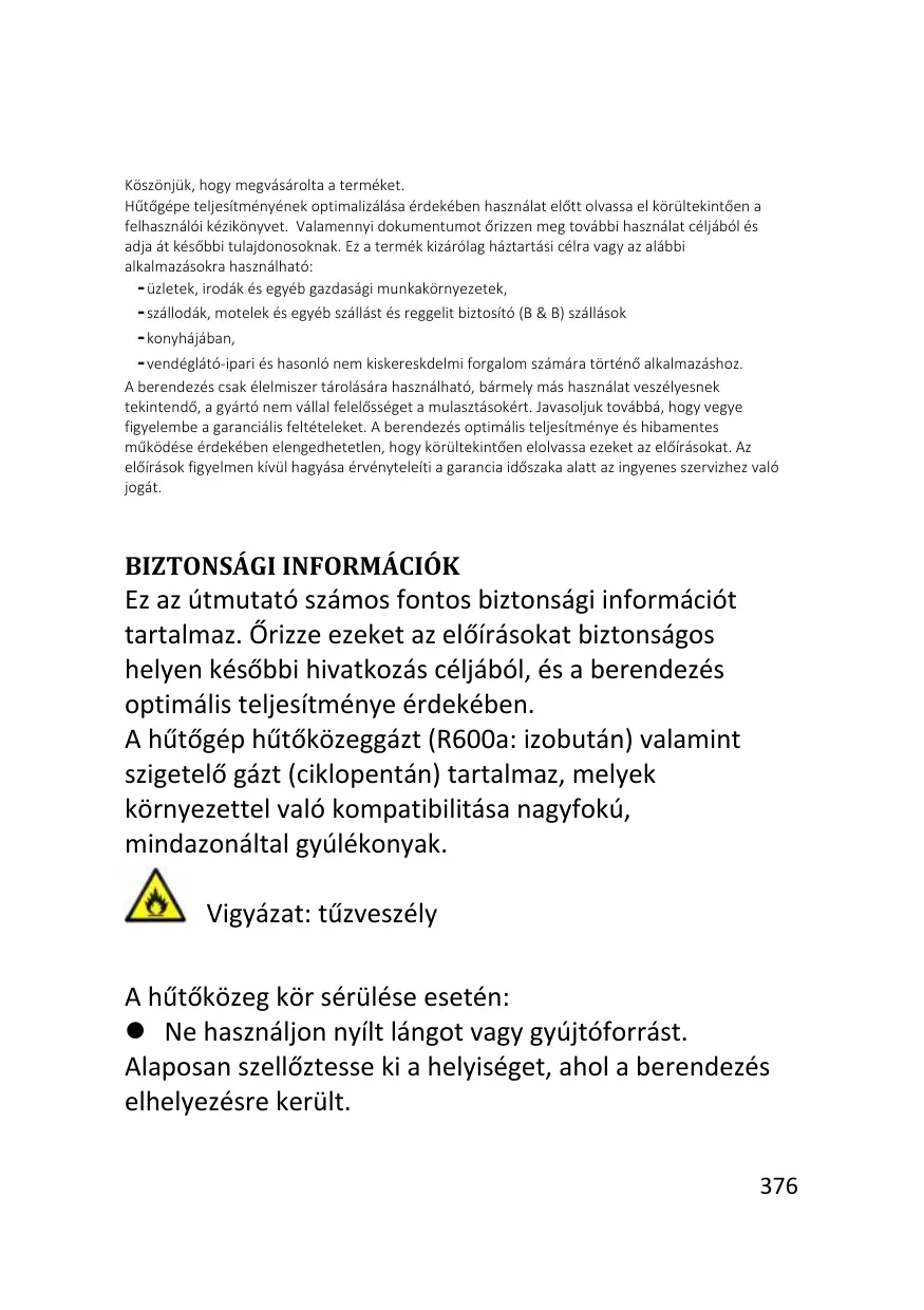  Evite llamas desnudas y fuentes de ignición. Ventile a fondo la estancia donde se encuentre situado el electrodoméstico. 60