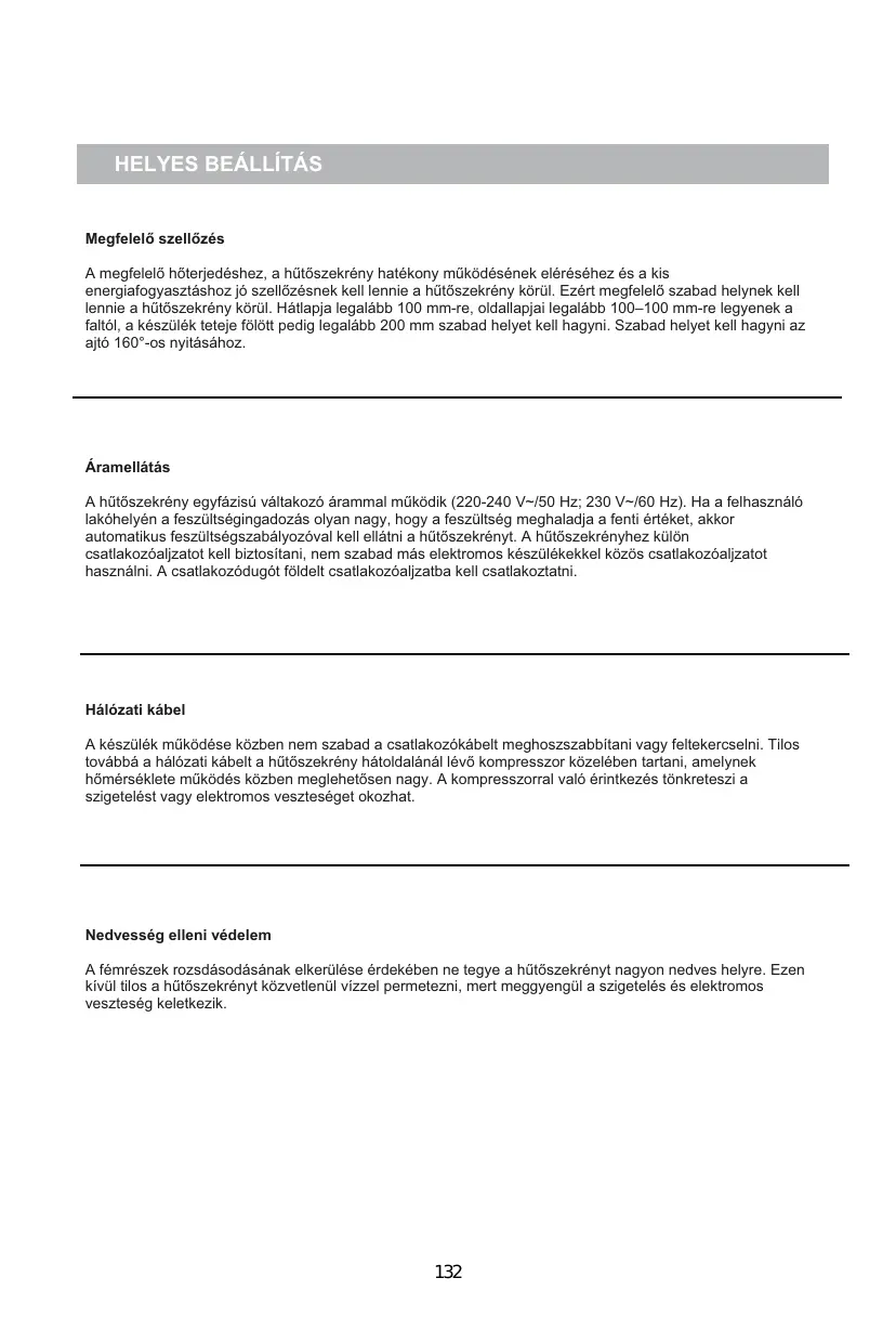 L'appareil est seulement compatible avec une prise de 220-240V~/ 50Hz ; 230V~/ 60Hz. Si vous souhaitez brancher votre réfrigérateur dans un lieu où le voltage ou la fréquence sont différents de ceux précédemment préconisés, il est important, par mesure de sécurité, que vous vous rapprochiez d’un électricien ou d’un professionnel qualifié de manière à faire les adaptations nécessaires, notamment en matière de mise à la terre.