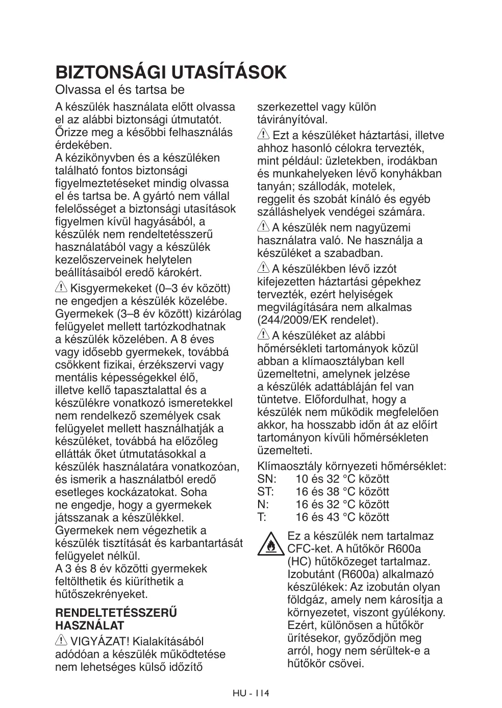 CFC. Le circuit de réfrigérant contient du R600a (HC). Appareils avec isobutane (R600a) : l’isobutane est un gaz naturel qui n’est pas nuisible à l’environnement, mais il est inflammable. Par conséquent, assurez-vous que les tuyaux du circuit réfrigérant ne sont pas endommagés, surtout lorsque vous videz le circuit réfrigérant.