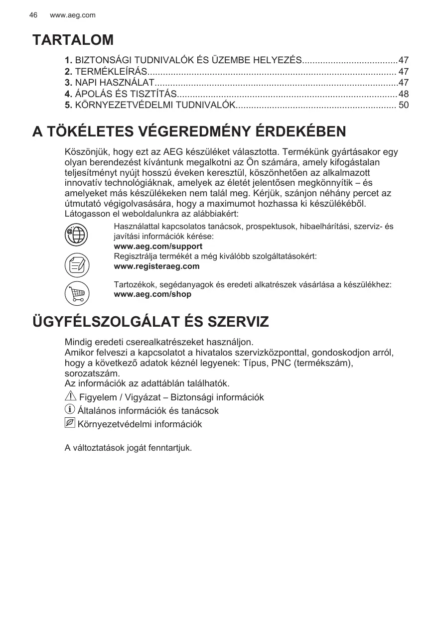 Enregistrer votre produit pour un meilleur service : www.registeraeg.com Acheter des accessoires, consommables et pièces de rechange d’origine pour votre appareil : www.aeg.com/shop