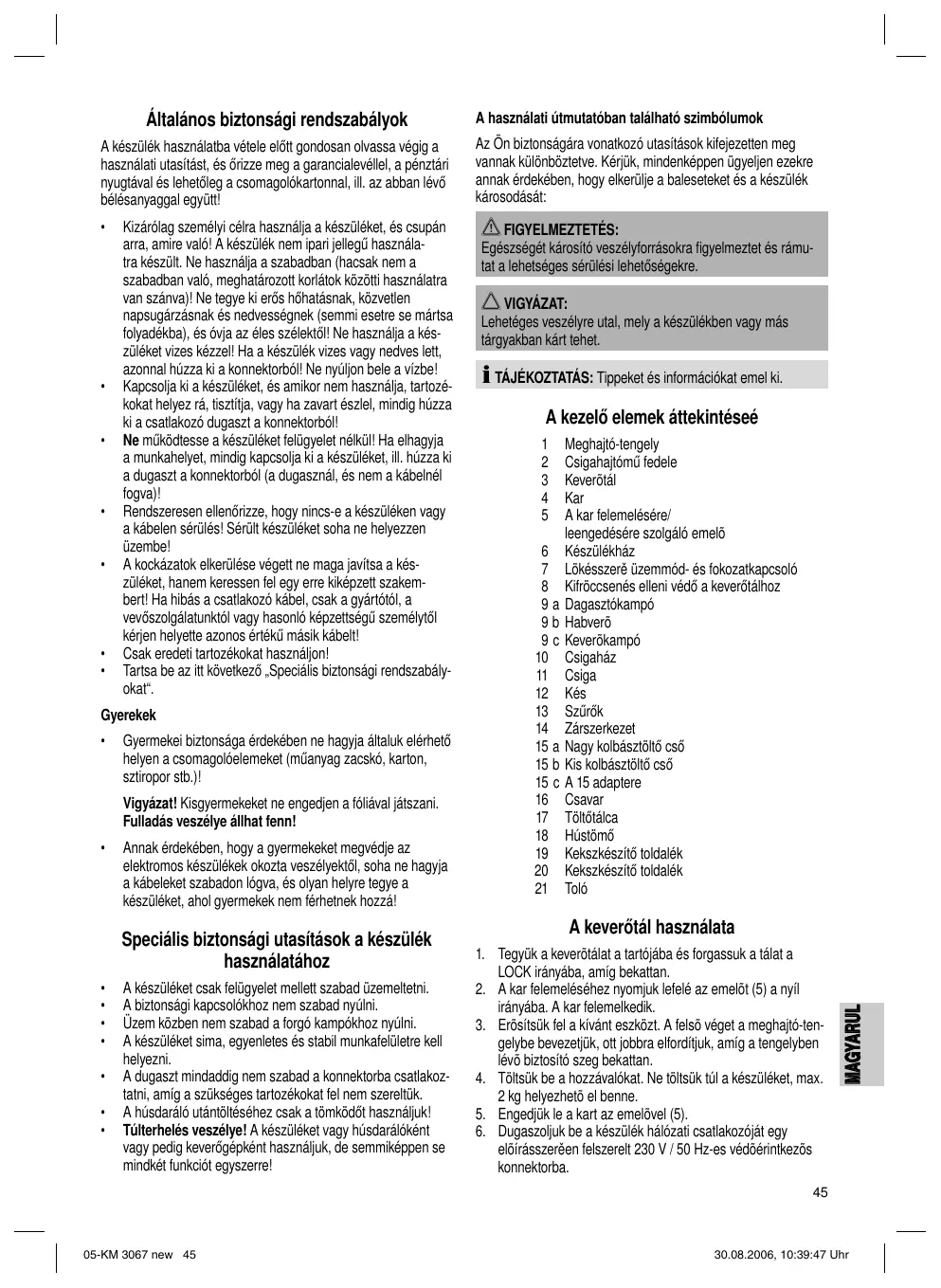 Téléchargez la notice de votre Konyhai robotgép au format PDF gratuitement ! Retrouvez votre notice KM 3067 - CLATRONIC et reprennez votre appareil électronique en main. Sur cette page sont publiés tous les documents nécessaires à l'utilisation de votre appareil KM 3067 de la marque CLATRONIC.
