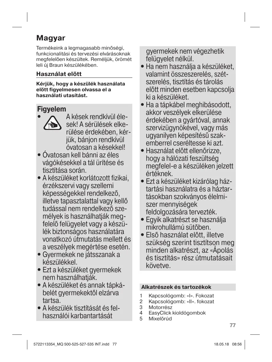 Téléchargez la notice de votre Botmixer au format PDF gratuitement ! Retrouvez votre notice MULTIQUICK 5 MQ 527 OMELETTE - BRAUN et reprennez votre appareil électronique en main. Sur cette page sont publiés tous les documents nécessaires à l'utilisation de votre appareil MULTIQUICK 5 MQ 527 OMELETTE de la marque BRAUN.