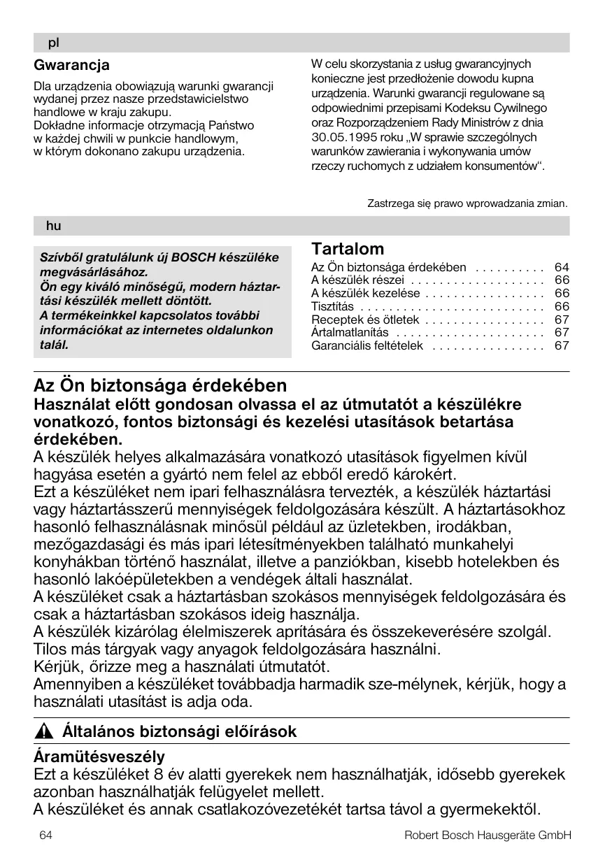 HASZNÁLATI ÚTMUTATÓ MSM64010 BOSCH