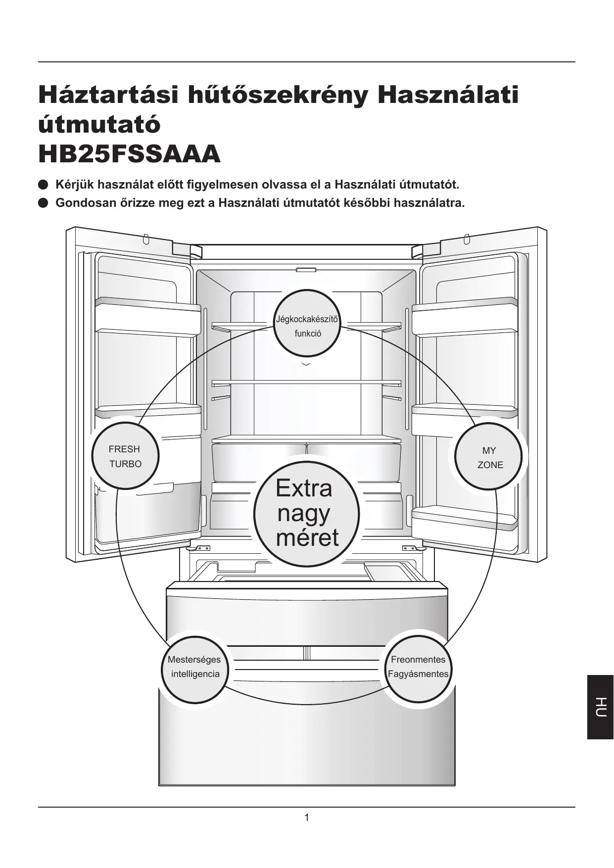Háztartási hűtőszekrény Használati útmutató HB25FSSAAA Kérjük használat előtt figyelmesen olvassa el a Használati útmutatót. Gondosan őrizze meg ezt a Használati útmutatót későbbi használatra.