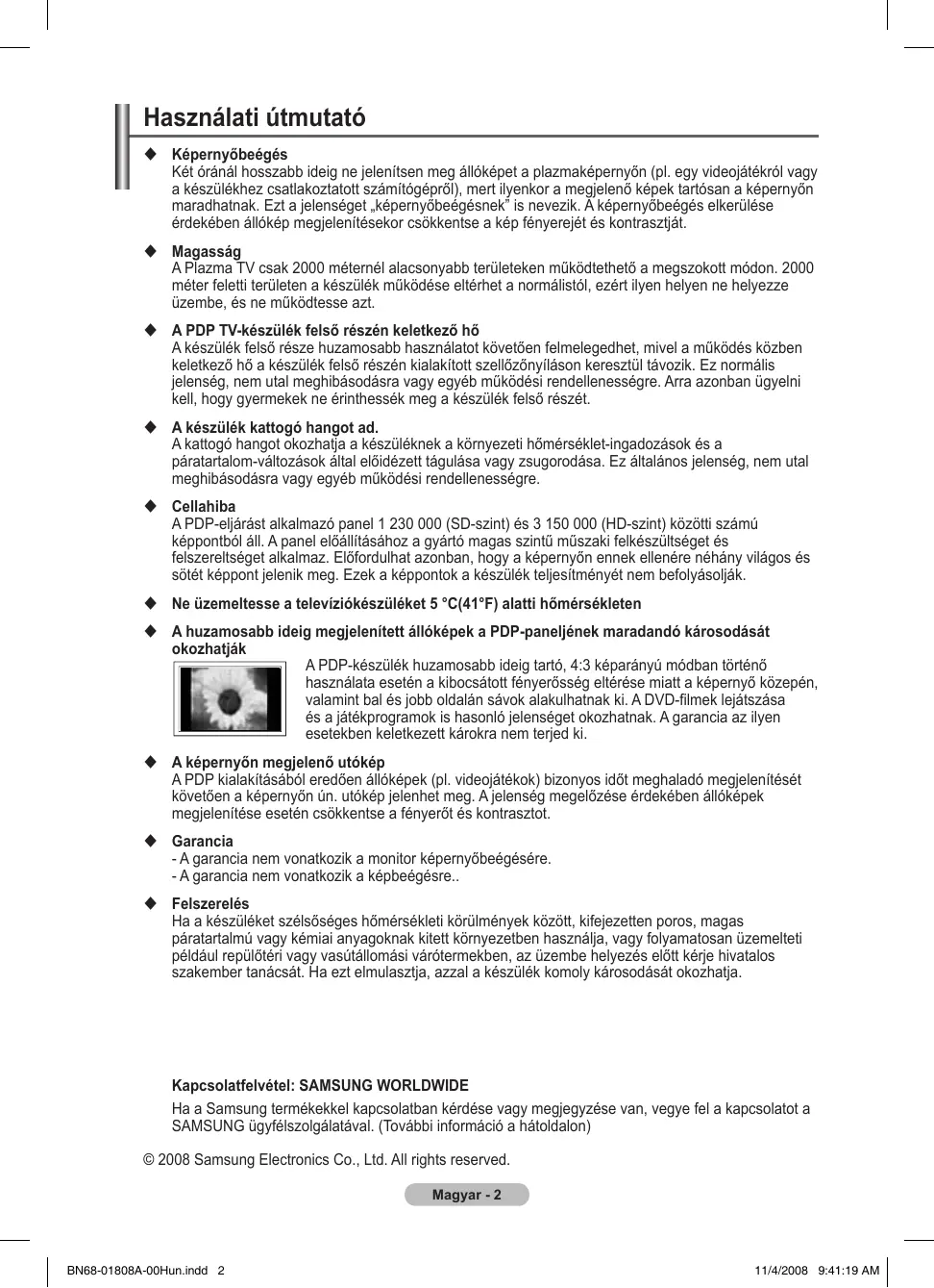 HASZNÁLATI ÚTMUTATÓ PS42A410 SAMSUNG