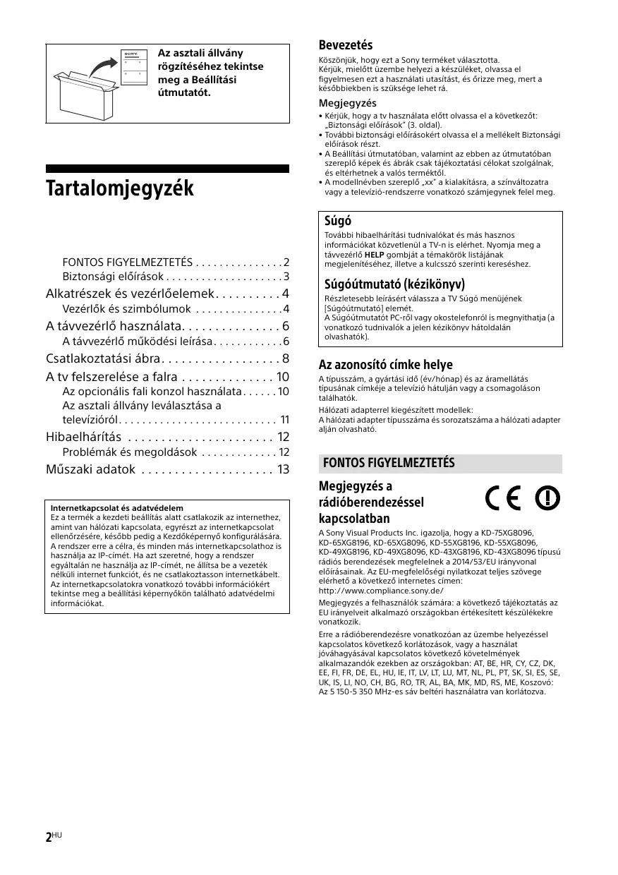 HASZNÁLATI ÚTMUTATÓ LCDKD435XG8096BAEP SONY