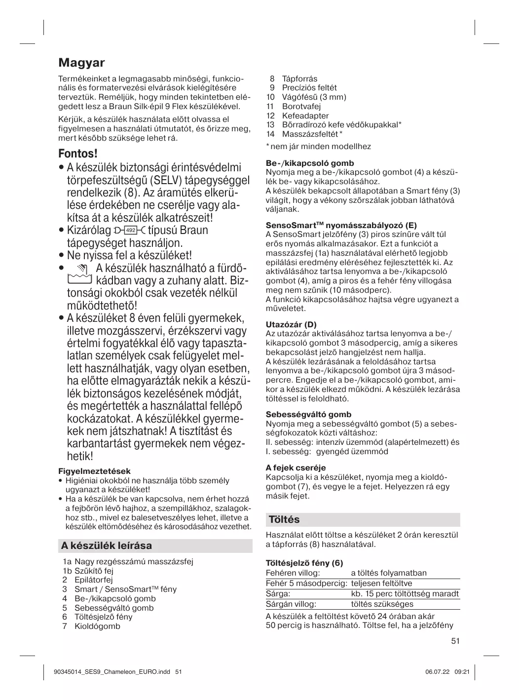 Magyar Termékeinket a legmagasabb minőségi, funkcionális és formatervezési elvárások kielégítésére terveztük. Reméljük, hogy minden tekintetben elégedett lesz a Braun Silk·épil 9 Flex készülékével. Kérjük, a készülék használata előtt olvassa el figyelmesen a használati útmutatót, és őrizze meg, mert később szüksége lehet rá.