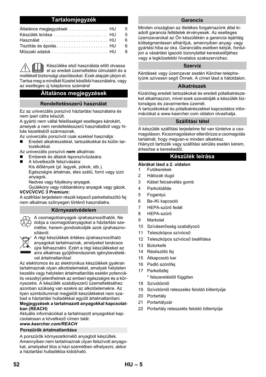 HASZNÁLATI ÚTMUTATÓ VCS KARCHER