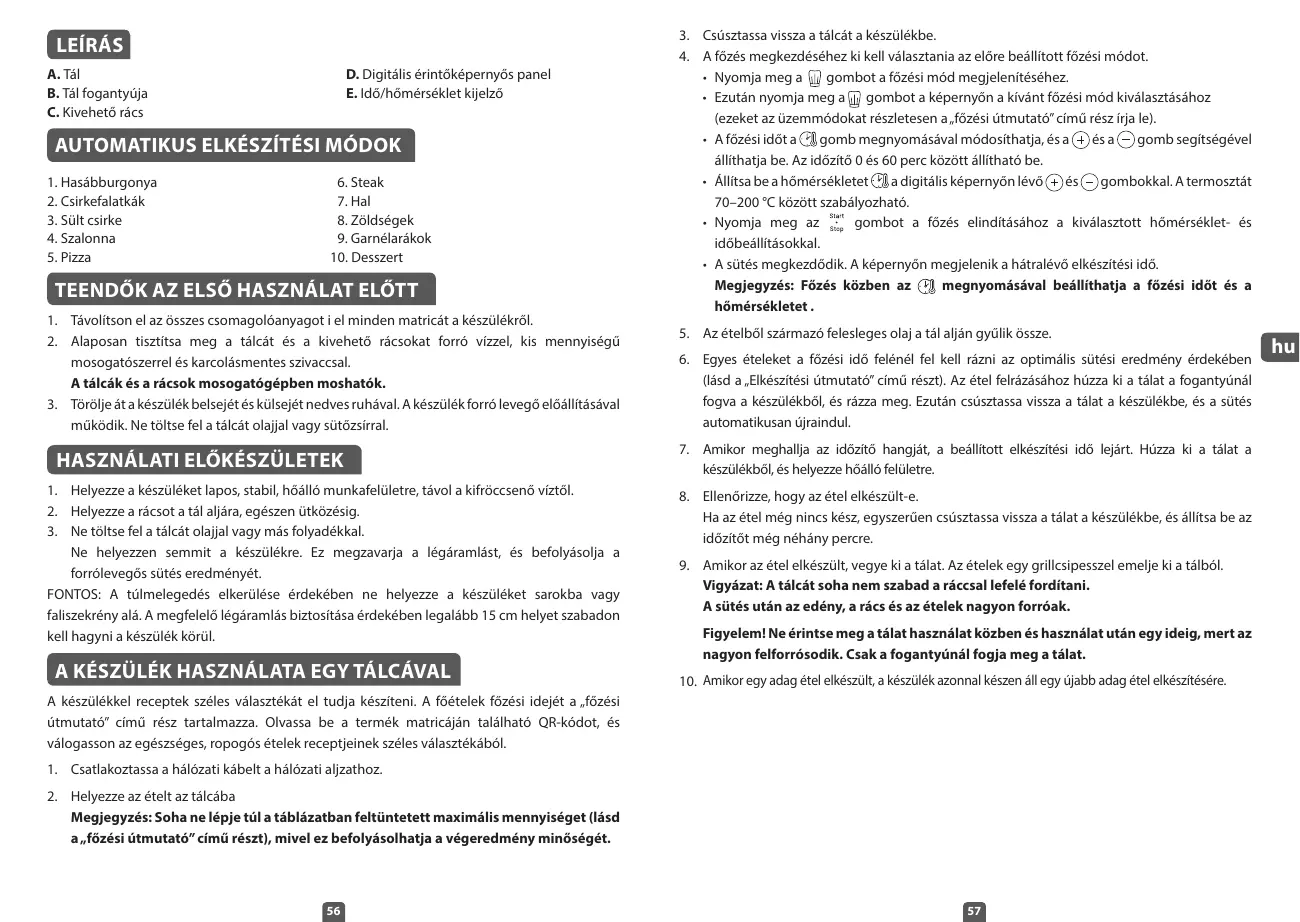 MODE D’EMPLOI DE L’APPAREIL L’appareil permet de cuire une vaste gamme de recettes. Les temps de cuisson pour les principaux ingrédients sont indiqués dans la section « Réglages ». Savourez des plats sains et croustillants grâce à notre grande variété de recettes en flashant le code QR sur le sticker du produit.