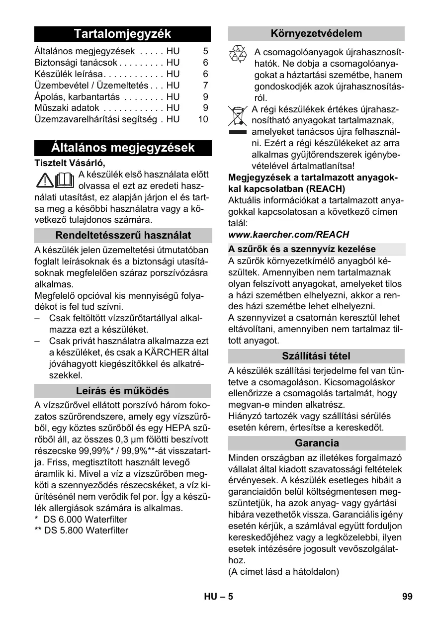 HASZNÁLATI ÚTMUTATÓ VC6 KARCHER