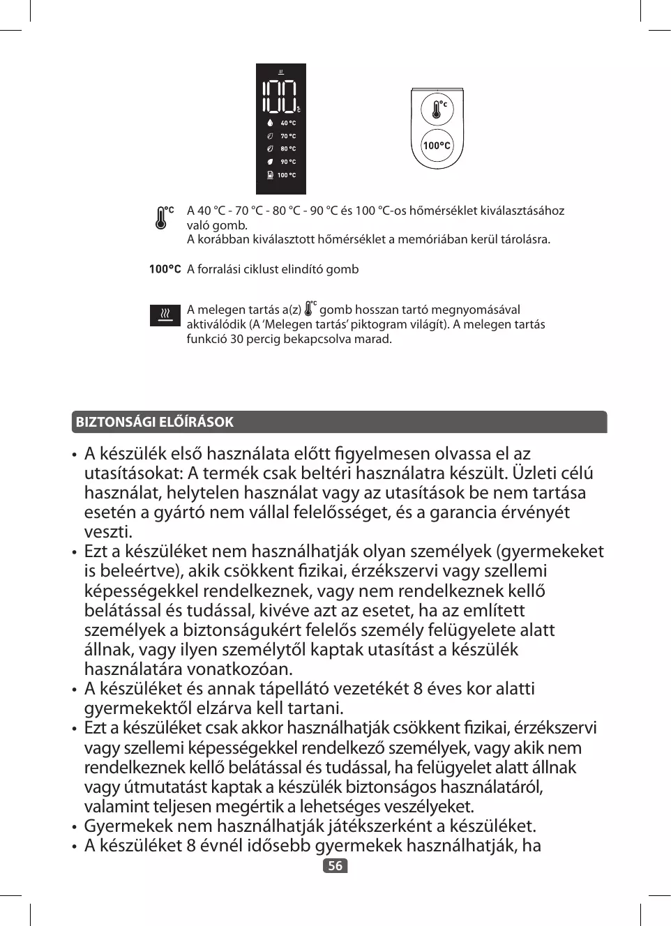 ohutult kasutama ning nad mõistavad seadme kasutamisega kaasnevaid ohte. Lapsed ei tohi seadet puhastada ja hooldada, välja arvatud üle 8 aasta vanused lapsed, keda juhendab täiskasvanu.